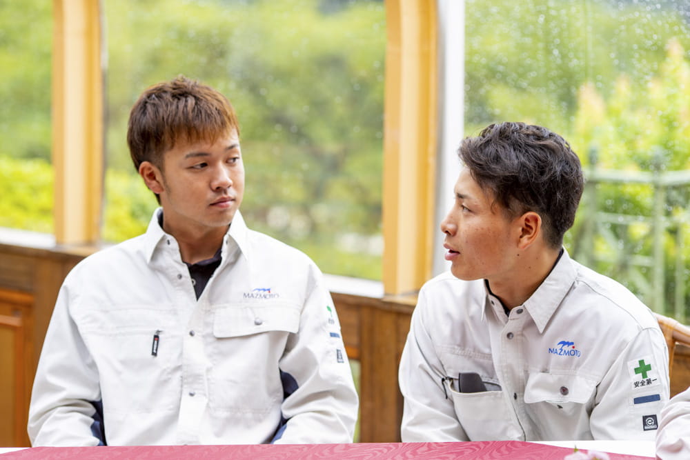 松本組の若手社員6人が集まって本音でトーク。